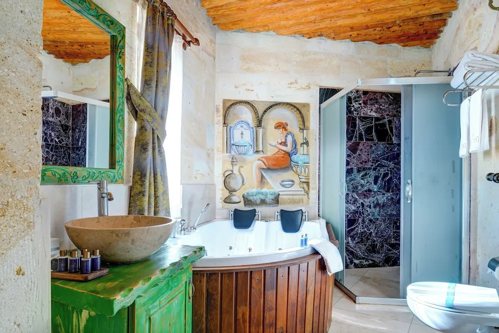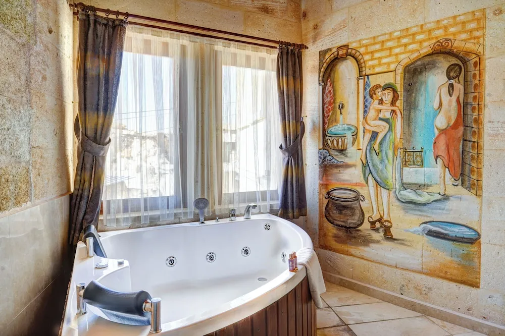 Ürgüp bölgesindeki Türkan Cave Hotel konaklamanızda, Göreme Milli Parkı ve Ortahisar Kalesi yakınında konaklayacaksınız. Bu otel Manzara ve Kültür Park ile 0,6 mi (1 km) ve Hallacdere Monastery ile 0,6 mi (1 km) mesafede.