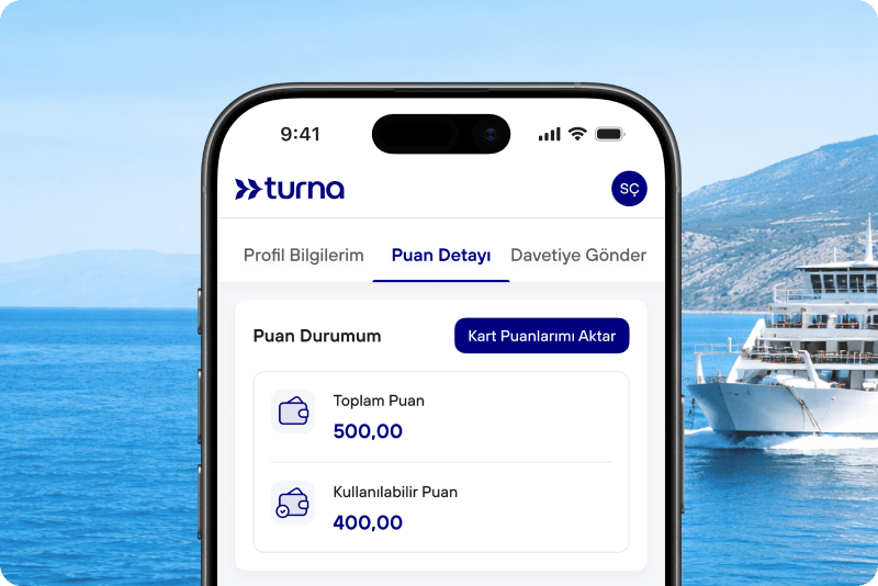 Kart puanlarını aktarma ayrıcalığı ile banka ve kredi kartlarınızda biriken puanları, değer kaybı yaşamadan Turna hesabınıza aktarın. Puanlarınızı seyahatlerinizde kullanın.